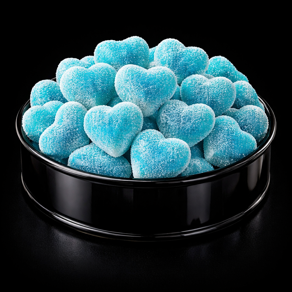 Jelly hearts bursting with raspberry flavour, a fizzy sugar coating for extra sweetness and jelly...
