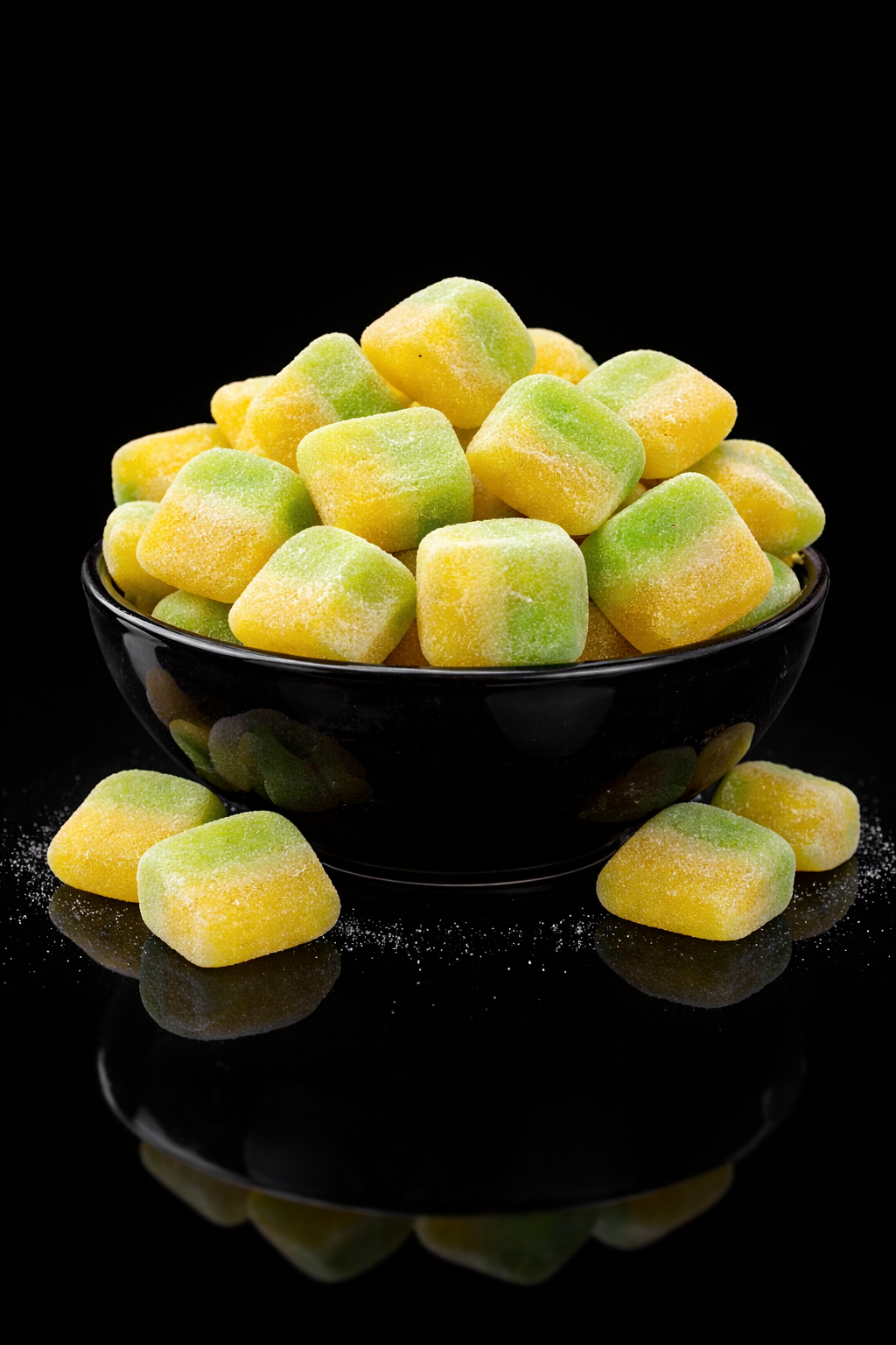Exquisite fruit confections, artfully crafted into playful jelly bean shapes bursting with vibrant fruity flavors.